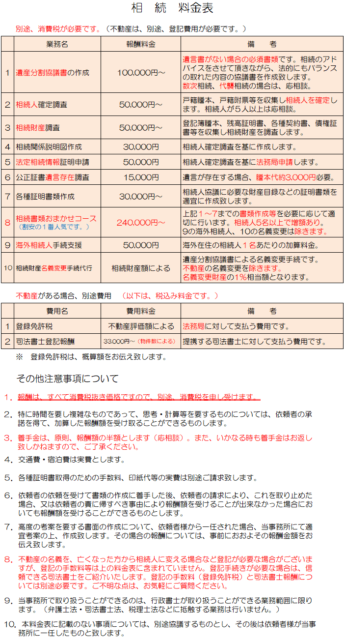 当事務所へお支払い頂いた料金は、相続財産から控除できるマイナス資産として計上できますので、ご安心ください。