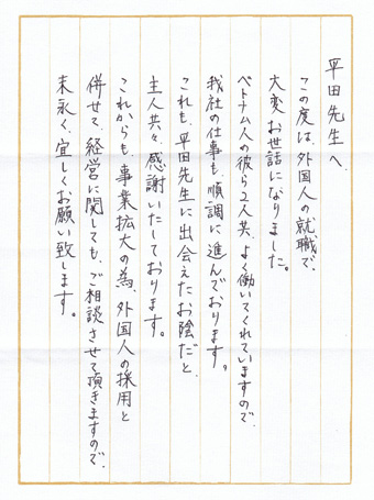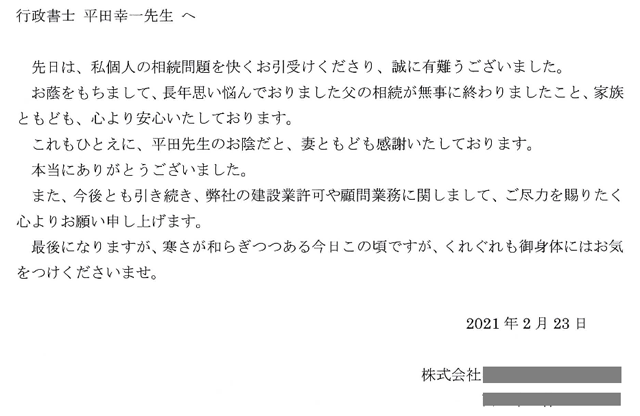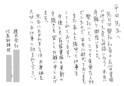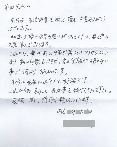 ご依頼事例 ●相続・ご依頼人からの御礼 ●永住許可の取得 K氏 ●相続手続 福山市 T氏 ●在留資格取得 会社経営A氏 ●相続手続 福山市 Y氏 ●在留資格取得 ベトナム人 G氏 ●相続手続 福山市 N氏 ●在留資格取得 尾道市 株式会社 W様