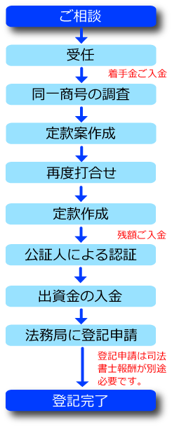 ですから、①定款作成 ②定款認証 ③登記申請 の3つの手続を連続して行うことになります。
