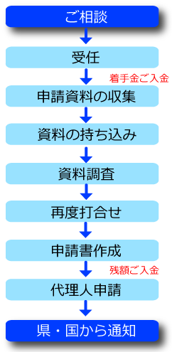 建設業に精通した行政書士であれば、すべての手続を一貫して任すことができますので、事業上で発生した領収書や確定申告書、健康保険加入証明など、お手元にある資料を準備すれば、後は行政書士が処理することになります。